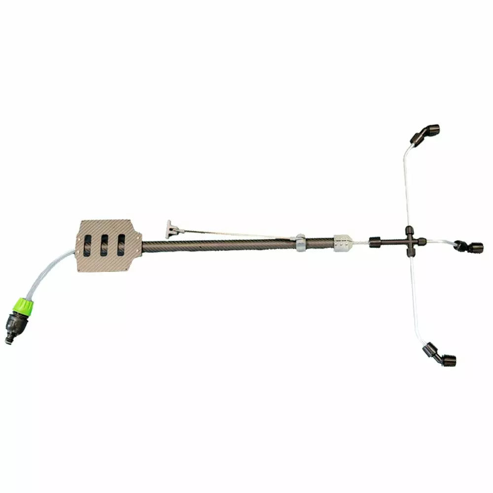 Le kit comprend un pulvérisateur horizontal orientable équipé de trois buses. Un tuyau de 40 mètres est également fourni, permettant de traiter des surfaces en hauteur avec une largeur de pulvérisation maximale d'un mètre. L'installation et le retrait du système de pulvérisation sont rapides et simples.
